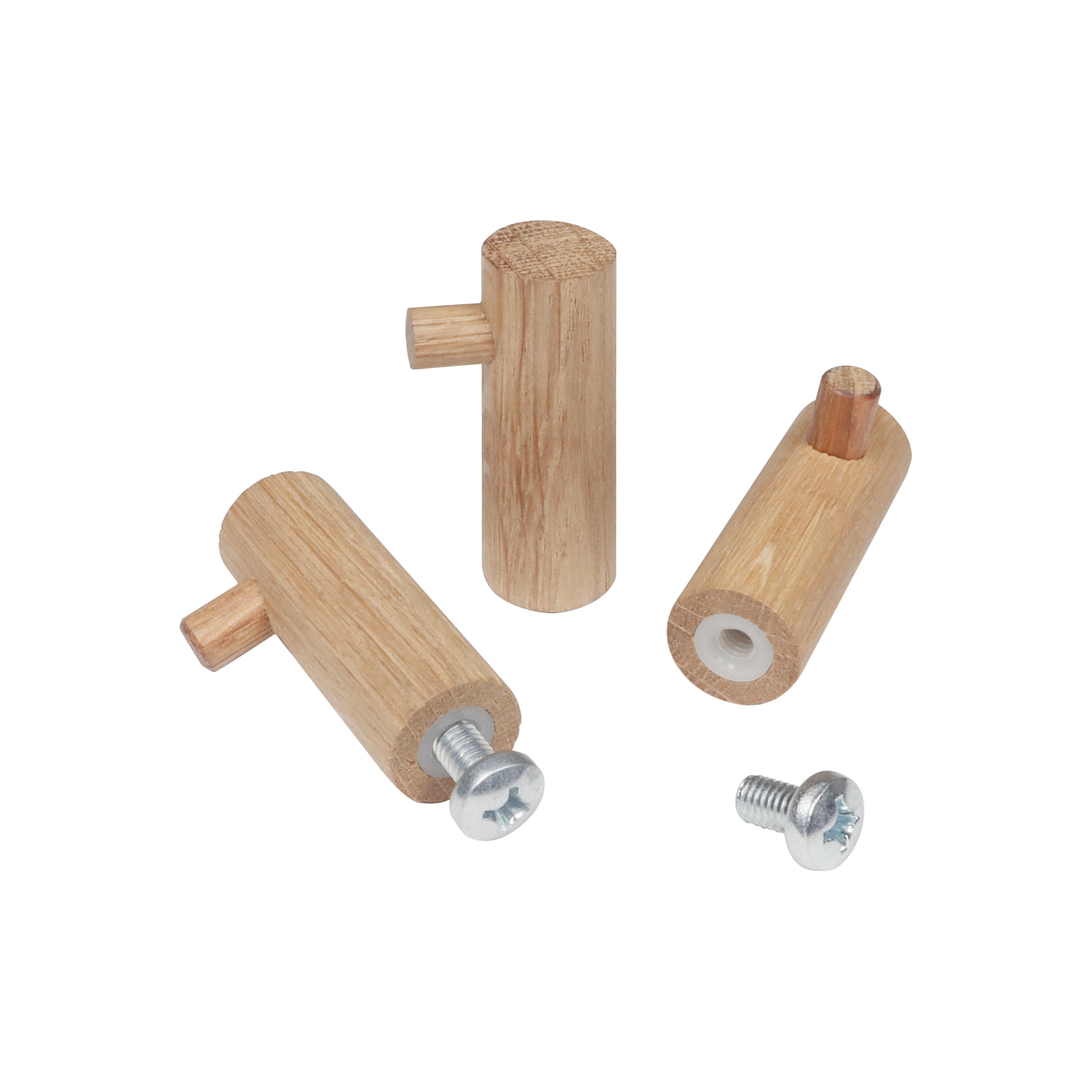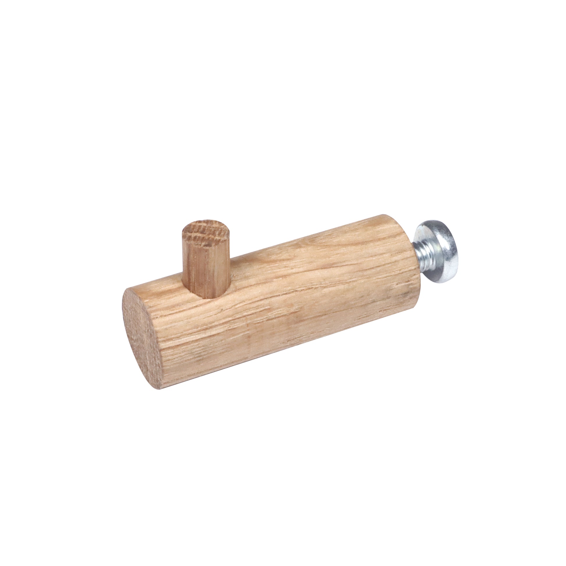 The coat hook is part of the LY Family and was specially developed for the LY Wardrobe. It is made of oak with a recessed threaded sleeve into which a screw (supplied) can be screwed from behind through the steel sheet of the wardrobe, thus creating a stable connection. The position of the hooks can be determined in the hole pattern of the wardrobe itself.