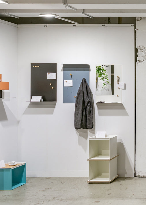Eine Möbelkollektion im Rahmen einer Messe für zeitgenössische und moderne Kunst zu zeigen, in markanten Räumen, in denen vor einhundert Jahren der Flugverkehr aufgenommen wurde, ist besonders. Die Architektur- und Kunstfotografin Natalia Carstens (nataliacarstens.com) hat die Ausstellung im Raumkontext auf beeindruckende Weise dokumentiert.