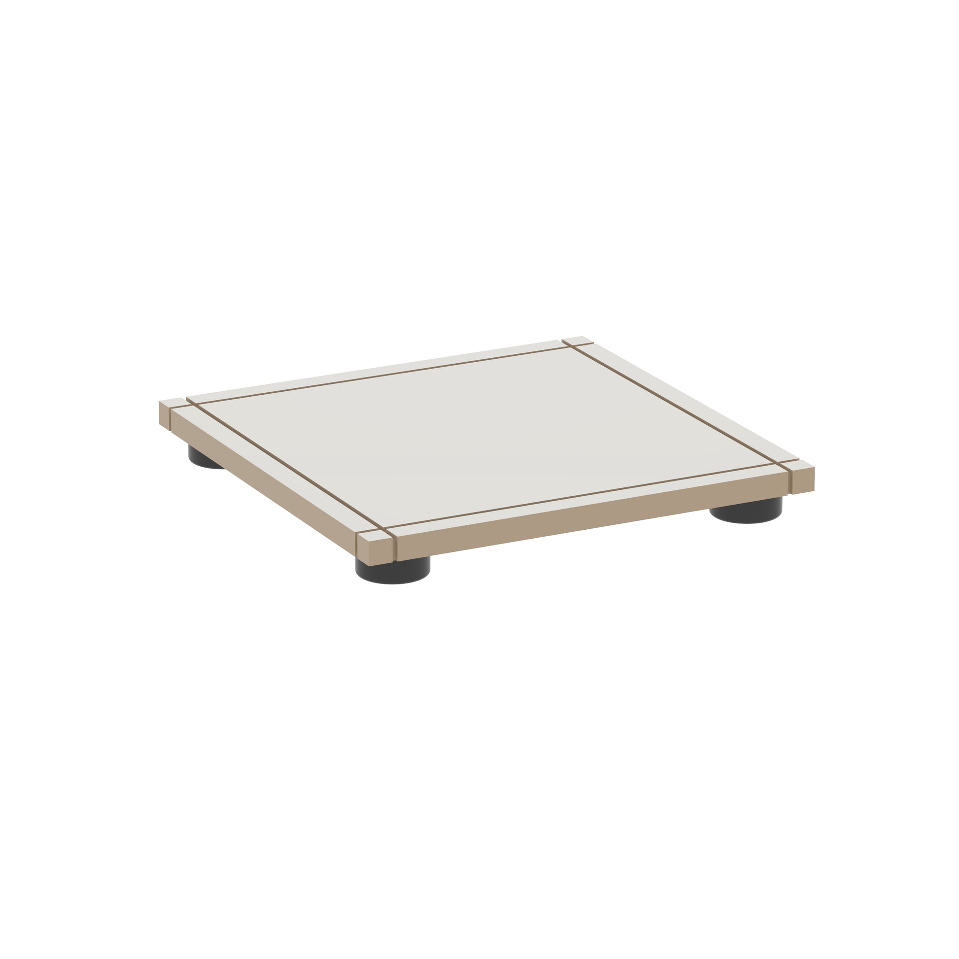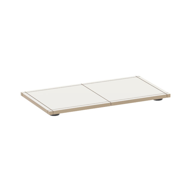 Der YU Regalsockel besteht wahlweise aus MDF mit weiß seidenmatter Filmbeschichtung oder aus geölter Eiche.